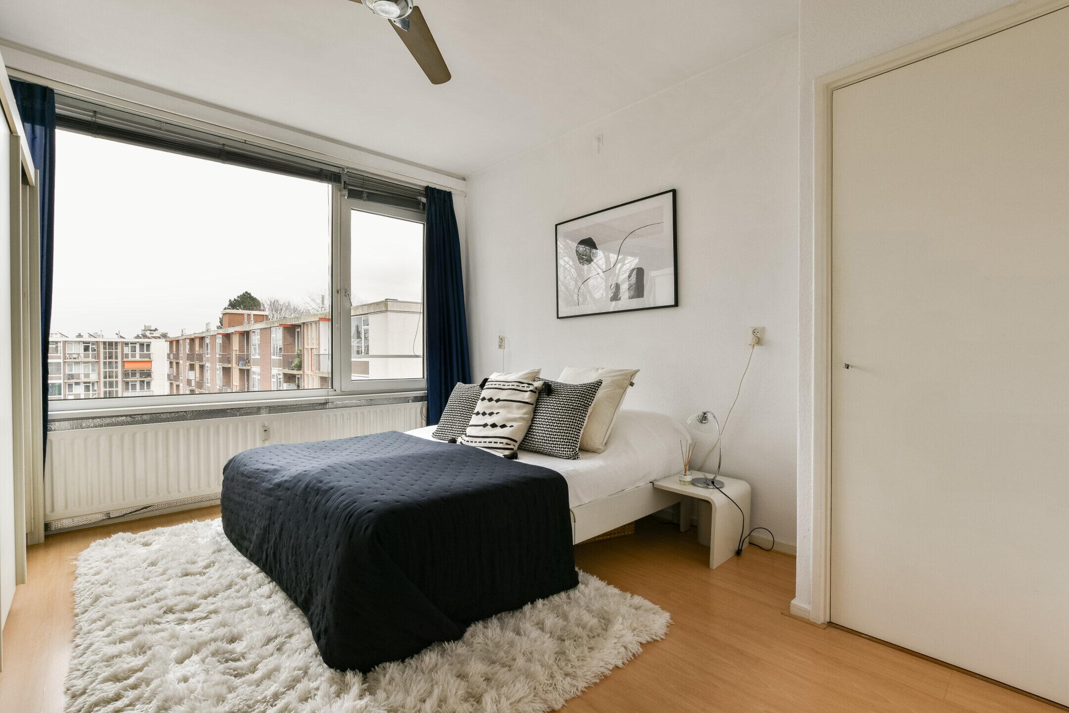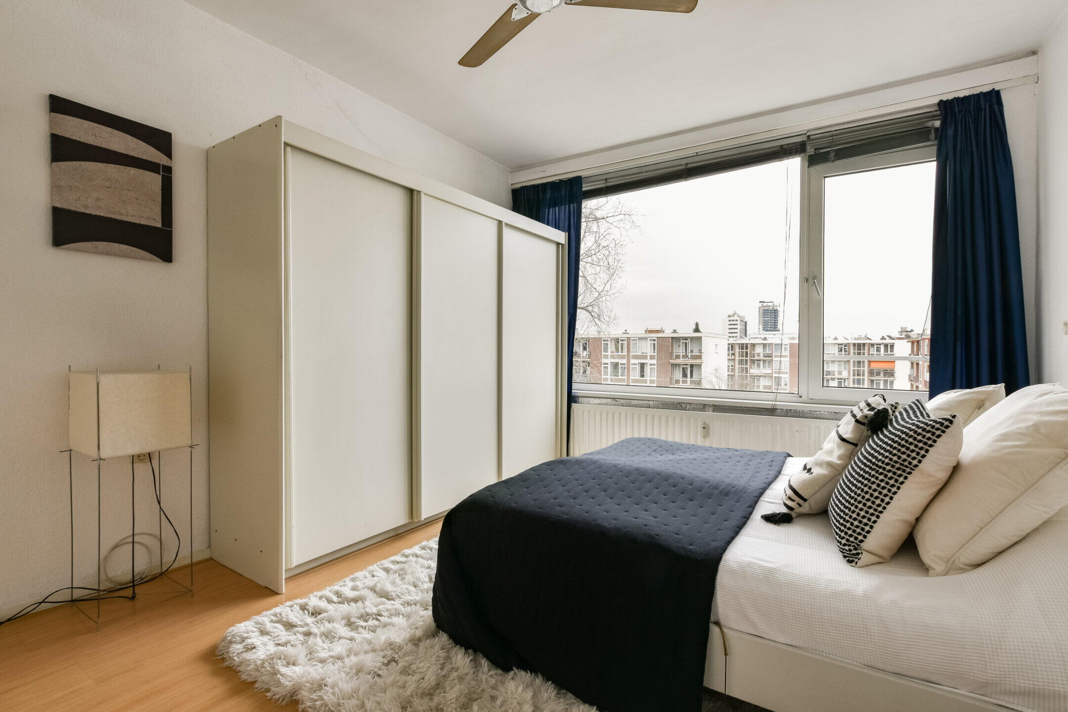 Just a stone’s throw from the luxury shopping center Groot Gelderlandplein, the Zuidas business district, and the Amsterdamse Bos, we offer this bright and well-laid-out 4-room apartment (approx. 85 m²). The apartment is located on the third floor of a well-maintained residential complex and features two bedrooms, a spacious living room, a dining area, and two balconies facing both west and east.